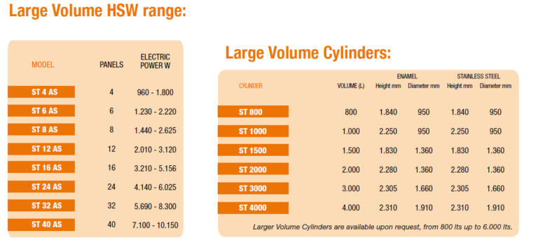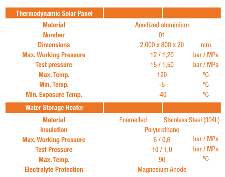 - Solar Thermodynamic Panels – Available from 6 to 40 panels, depending on your requirement.